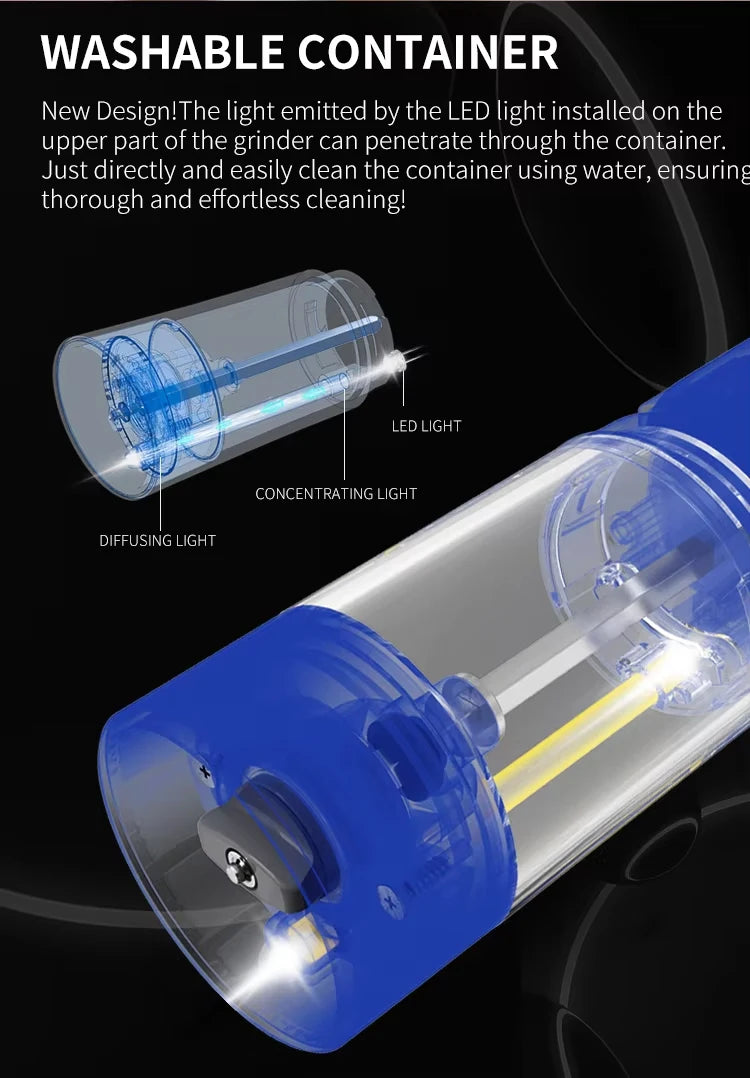 Imagine seasoning a steak or salad with freshly ground pepper, releasing intense aromas and enhancing every dish. With these electric grinders, you quickly adjust the grind size and maintain total control over the quantity. The LED light prevents over‑seasoning, and the modern design enhances your table at dinners or barbecues. Users say: “I never use manual grinders anymore; seasoning is now quick and precise” and “I love the light and the coarse‑to‑fine adjustment; I use them every day in the kitchen and at the table.”