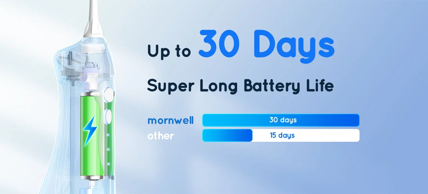 IPX7 waterproof design – Use the irrigator safely in the shower; its robust casing prevents water from entering the device.